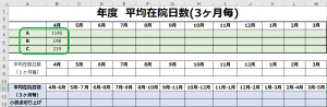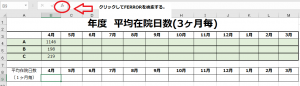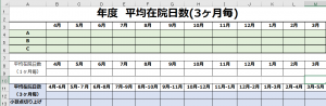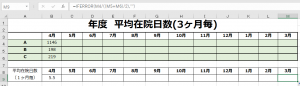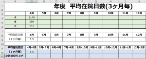 前回の平均在院日数 計算 エクセル 簡単を使って、3ヶ月毎の平均在院日数エクセルを作ることは可能でしょうか?と問い合わせがありました。