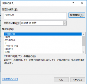 関数のfxボタンをクリックし、IFERRORと検索をします。