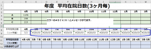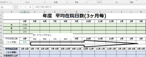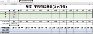 3ヶ月毎の平均在院日数のエクセルは、簡単に出来るので是非お勧めします。