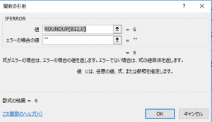 小数点切り上げのところにfxボタンをクリックし先ほど検索(関数のIFERROR)したように実行します。