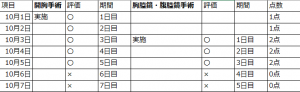 例)10/1肺がんに対し開胸手術を行い、10/3縦隔腫瘍に対し胸腔鏡・腹腔鏡手術を実施した場合はそれぞれ評価出来る。
