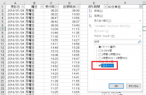 これで待ち時間空白セルのみを表示出来ました。待ち時間空白セルの所に2時間以上と入力しておきます。