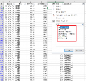 これで、2時間までの30分単位表示が出来ました。残りの空白は、2時間以上と表示にしておきます。