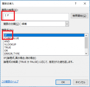 関数式IFを検索しIFを選択します。