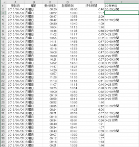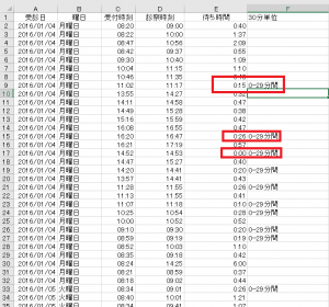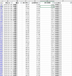 外来の待ち時間をエクセルで統計出来ないか?と依頼がありました。