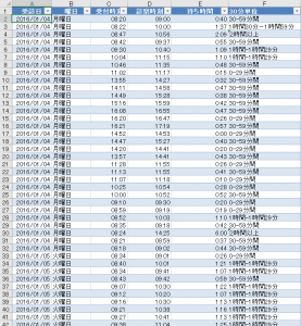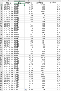 日付と受付時刻と診察時刻しかないデータをどうやって統計を出すんだろう。まずは開いて考えてみなきゃ。