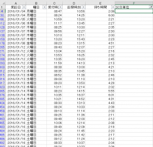 曜日ごとに分けて、30分を単位として統計をしてみたら面白いんじゃないかと!意味あるデータになるのでは?!と思い実行しました。