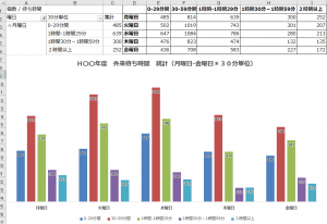 (月曜日から金曜日までとして、0-30分間、30-60分間、60-90分間・・・・といった統計)